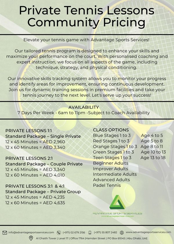 Whether you're a beginner learning the basics or an advanced player keen to refine your skills our tailored tennis coaching helps improve your game. Our Tennis Skills Tracking program, provides a structured way to monitor your progress from foundational strokes to competitive techniques. Join us to boost your confidence, enhance your skills, and enjoy tennis to the fullest!